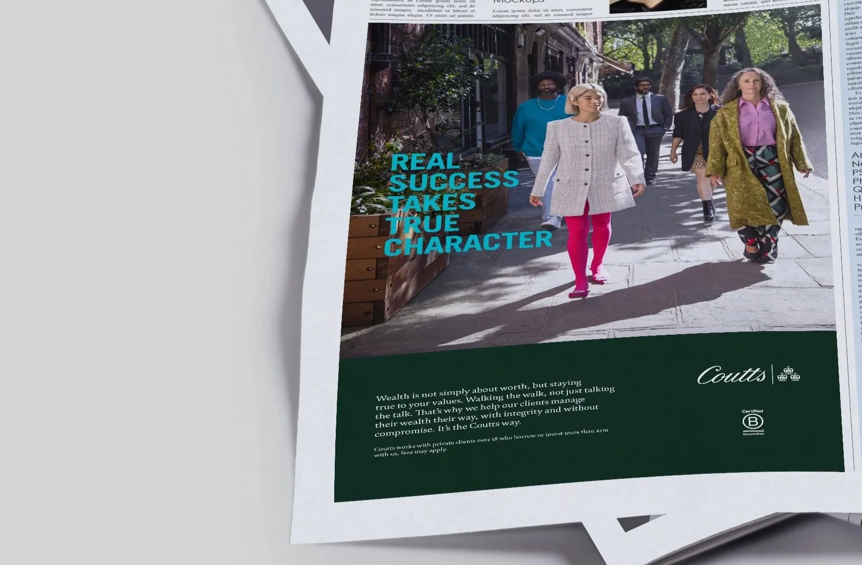 The creative and TV advert was the first brand campaign Coutts had done for 50 years. Working with The&Partnership as part of team Coutts we redefined how they looked, how they spoke, and who they were speaking to. Modernising them.